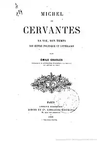 - Miguel de Cervantes, sa vie, son temps, son œuvre politique et littéraire, 1866,