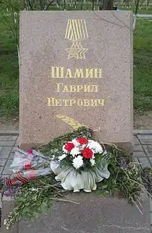 Таким образом, товарищ Шамин Г. П. победу встретил в окрестностях Праги. Был удостоен чести участвовать в Параде Победы 24 июня 1945 года на Красной площади в Москве. Указом Президиума Верховного Совета от 27.06.1945 года был награждён орденом Славы I степени[13], став полным кавалером ордена Славы. 6 апреля 1985 года в честь 40-летия Победы был награждён орденом Отечественной войны I степени[14].
