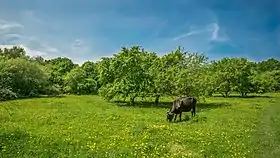 Село с разнообразными ландшафтами и обширными лесными массивами изнутри.
