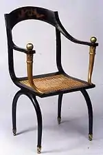Силуэт мебели и манера декорирования, будь то подставки с головами, получившие широкое распространение, или инкрустации с медной сеткой и другие элементы, являющиеся отличительной чертой Шапюи, позволяют установить время изготовления: период консульства или начала империи (1799—1810 годы). Учитывая тщательность исполнения, этот предмет мебели следует отнести к разряду «стульев для гардеробной комнаты».