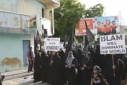 Роль шариата стала предметом споров во всем мире. Введение законов, основанных на шариате, спровоцировало межобщинное насилие в Нигерии и, возможно, способствовало распаду Судана. Некоторые юрисдикции в Северной Америке приняли запреты на использование шариата, сформулированные как ограничения религиозных или иностранных законов. Продолжаются споры о том, совместим ли шариат с демократией, правами человека, свободой мысли, правами женщин, правами ЛГБТ и банковским делом.[1][2][3]