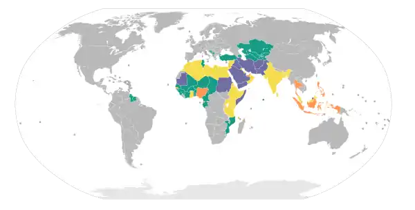 Шариат определяет и организует жизнь мусульман на пространстве исламского мира. Однако, его влияние не везде одинаково. В Саудовской Аравии шариат остаётся единственной правовой системой. В Сирии, Ливане и исламских странах Африки государственные правонарушения и сделки между гражданами регулируются нормами светского законодательства, а вопросы наследования, брака, развода, благотворительных организаций рассматриваются с точки зрения шариата. В Турции и странах Средней Азии суды следуют светским юридическим кодексам[14].