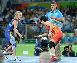 ![]() Шарифов на Олимпийских играх 2016 года в Рио-де-Жанейро. Схватка между Билялом Маховым и Аленом Засеевым | |