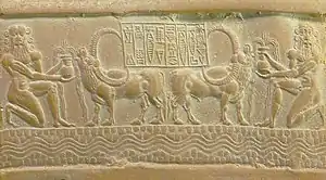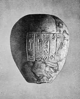 ![]() Вотивное навершие булавы, посвященное Шаркалишарри, царём Аккада богу Шамашу. Британский музей | |