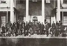 Члены Шарлоттаунской конференции, конференции по обсуждению Канадской конфедерации, напротив Дома правительства в 1864 году.