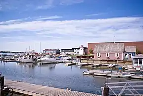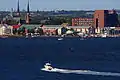 Вид с Марины Шарлоттауна. На набережной города преобладает градостроительство.