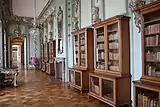 - 354 — Библиотека (нем. Bibliothek) — как и во всех дворцах, в которых жил Фридрих II, его личная библиотека в Шарлотенбурге занимала особое положение. Сейчас в подлинных, изготовленных из кедра, шкафах хранятся книги из собрания бывшей зимней резиденции короля — городского дворца Потсдама.