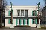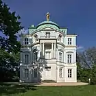 Построен на восточной окраине дворцового ансамбля в 1824—1825 годах в стиле классицизма и в подражание неаполитанской вилле Chiatamone по планам Карла Фридриха Шинкеля (откуда происходит его второе, неофициальное, название павильон Шинкеля, нем. Schinkel-Pavillon[50])[51][52]. Размером 20 на 16 метров, опоясанное балконом по всему периметру второго этажа, здание[53], использовавшееся для уединения Фридрихом Вильгельмом III (избегавшего после смерти своей супруги помещения Нового флигеля, где они раньше жили), также сильно пострадало при бомбардировках и было восстановлено только в 1960 году[51]. Сейчас в нём — наряду с постоянной выставкой, посвящённой многогранному таланту Шинкеля — выставлены работы немецких художников и скульпторов XIX века: Рауха, Фридриха, Блехена и Гертнера[51].