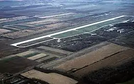 Военный аэродром существовал на этом месте уже с 1940-х годов. В 1950-х здесь размещался венгерский военный аэродром. В 1960—1990 годах — советский военный аэродром. Имеющаяся бетонная Взлётно-посадочная полоса длиной 2 500 метров была построена в 1982 году.