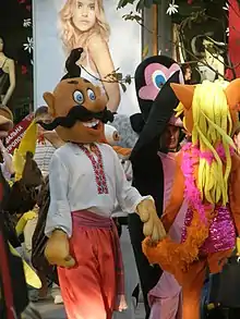 Костюм — величезний вінок на голові з безліччю стьожок, буси замість намиста, півпуда стеклярусу, нашитого на вбрання, все це не мало нічого спільного з тим народним костюмом, який ми завжди можемо бачити, чи то на селі, чи в кожному першому-ліпшому музеї. Танок, не танок, а циркова акробатика. Пісня, не пісня, а один крик, галасування та вигуки.
