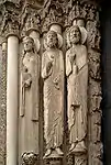 Вершина романского искусства ― скульптура западного портала в Шартре. Шартрский собор был посвящён святой Деве и особенно почитался, очевидно, потому, что место, на котором он стоял, было местом паломничества ещё в языческую эпоху. Здесь бил священный источник, он сохранялся в подвалах собора. Как и в других местах, привлекавших паломников, здания разных эпох сменяли друг друга — свято место пусто не бывает. Между 1145 и 1150 гг. началась постройка и декорировка нового фасада ― это и был т. н. «королевский портал», оконченный к 1155 г. В 1194 г. очередной пожар охватил собор ― сохранились лишь паперть, фасад и крипта, имевшая каменные своды. Немедленно началось сооружение нового здания ― уже в готическом духе, но прежний портал сохранился[2]