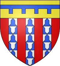 Описание герба: Герб дома Шатильон: De gueules, à trois pals de vair, au chef d'or |