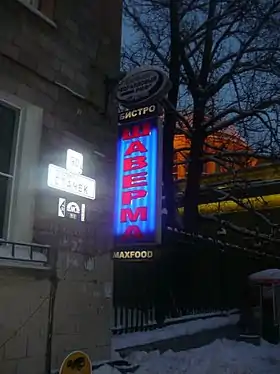 - В Израиле для того же блюда используется название шава́рма[5], но из-за отсутствия огласовок в обычном написании на иврите (ивр. שווארמה) больше распространено прочтение шва́рма; арабы, живущие в Израиле, произносят его как шуа́рма. Подаётся в лепёшке-пите, в тонком лаваше — лафе, или французском багете. Коренные иерусалимцы называют лафу «эштану́р». Любимые приправы — хумус, тхина, «амба» (жидкая приправа из маринованного манго), острый схуг. Также кладётся и/или подаётся отдельно картофель фри. В израильской шаварме полностью отсутствуют молочные составляющие в любом виде из соображений кашрута.