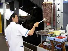 Шаурма́ или шаве́рма (ивр. שווארמה — шава́рма, араб. شاورما — шауа́рма) — ближневосточное блюдо из мяса (курица, ягнятина, баранина, реже — телятина, индюшатина, свинина), обжаренного на вертеле, завёрнутого в лаваш, реже — в питу, с добавлением специй, соусов и салата из свежих овощей[1]. Употребляется без использования столовых приборов.