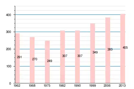 | 291 | 270 | 249 | 307 | 307 | 349 | 383 | 393 | 392 | 398 | 405 |