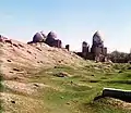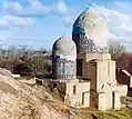 В нижней группе построек на террасе недалеко от входа располагается двухкупольный мавзолей. Средняя группа зданий состоит из группы мавзолеев времен Тимура, где похоронены его родственники и видные военные и религиозные деятели. Эти сооружения датируются последней четвертью XIV — началом XV веков. Среди них мавзолеи Эмир-заде (1386 г.), Туглу-Текин, племянницы Тимура Шади-Мульк-ака (Туркан-ака) (1371—1372 гг.) и сестры Тимура Ширин-бика-ака (1385—1386 гг.). Два последних мавзолея сохранились лучше всего. Главные фасады этих небольших однозальных построек скомпонованы в форме портала с богатым и красочным декором. Недалеко от мавзолея Ширин-бика-ака, заметно отличаясь от других сооружений, расположен восьмигранный мавзолей первой половины XV века с открытыми по сторонам проёмами. Он украшен мозаикой из глазурованных кирпичей и, вероятно, первоначально был перекрыт куполом на высоком цилиндрическом барабане.