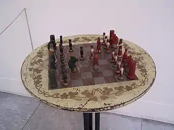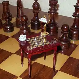 Со 2-й половины XIX века шахматный стол стал также играть в интерьере декоративную роль[4]. Шахматная доска на таких столах может выполняться в технике инкрустации с применением дорогих пород древесины (кедра, красного дерева, палисандра), камня, кости и др., может иметь резьбу и позолоту[5].