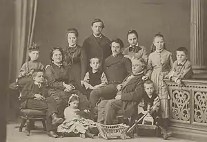 Жена — княжна Наталья Алексеевна Трубецкая (12.01.1835[3]—1918), дочь князя Алексея Ивановича Трубецкого от брака его с княжной Надеждой Борисовной Четвертинской. По словам внучки, «это была дружная, истинно христианская семья, должно быть, пресноватая — добродетель чаще всего такова — и совершенно лишенная практической жилки. Единственный из всей семьи, кто попытался покончить с неотступно преследовавшей ее нуждой, был мой дядя Дмитрий Николаевич, который стал банкиром»[4]. Всю жизнь одевалась в темное, как полу-инокиня[5]. Овдовев, жила в своей усадьбе Мураевня Рязанской губернии, с неженатым сыном Сергеем и незамужней дочерью Натальей. После их смерти переехала к дочери Софии в имение Ботово Дмитровского уезда. В браке имела 11 детей:
