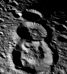 ![]() Кратер Шахразада — в центре. Снимок космической станции «Кассини-Гюйгенс», 9 марта 2005 года | |