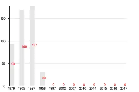 | 1879 | 1905 | 1927 | 1958 | 1997 | 2007[15] | 2010[16] |