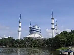 Крупнейшая в ЮВА мечеть Султана Салахуддина Абдуль Азиза с самым высоким минаретом в мире («Голубая мечеть», 1988).