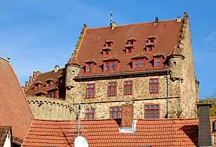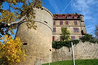 Около 1482 года замок был значительно расширен Гансом Якобом фон Эттлингеном и усилен в качестве оборонительного сооружения. В частности была построена высокая наружная стена (цвингер), защищённая тремя полукруглыми башнями выступающими за пределы стен. Внутри в качестве донжона была возведена отдельная высокая башня. Главная резиденция была построена между 1459 и 1497 годами Конрадом фон Швайнсбергом. Перед главными воротами был создан внешний контур укрепления (форбург), проход в них прикрывала оборонительной башня, которая сохранилась до наших дней.
