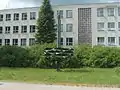 Здание бывшей гимназии и фонтан работы скульптора Эрнста Зауэра.