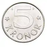 - 5 крон (все монеты, выпущенные с 1954 года);