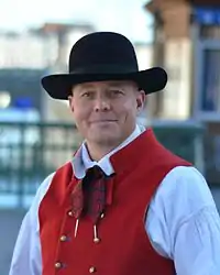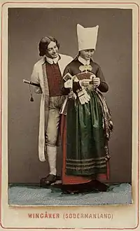 ![]() Мужской костюм Даларны [lower-alpha 1], иллюстрация из «Nordisk familjebok» | ![]() Женский костюм Даларны[lower-alpha 2] |