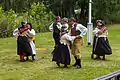 Танцоры в народных костюмах деревни Бю (Даларна) во время празднования Мидсоммара