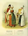 Группа жителей Сконе в народных костюмах, акварель
