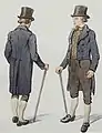 - Жилет (швед. vest) — являлся неотъемлемым атрибутом мужского костюма, носился на рубаху и зачастую имел лацкан.