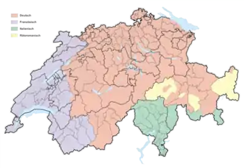 Швейцария находится на перекрёстке германской и романской Европы и имеет четыре основных языковых и культурных региона: немецкий, французский, итальянский и романшский. Хотя большинство населения — немецкоязычное, швейцарское национальное самосознание уходит корнями в общий исторический опыт, общие ценности: федерализм, прямая демократия и альпийская символика[12][13]. Из-за своего многоязычия Швейцария известна под разными названиями: Schweiz (в немецком языке); Suisse (французском); Svizzera (итальянском); и Svizra (романшском), однако на швейцарских монетах и марках вместо четырёх национальных языков используется латинское название страны: Confoederatio Helvetica, часто сокращённое до «Helvetia».