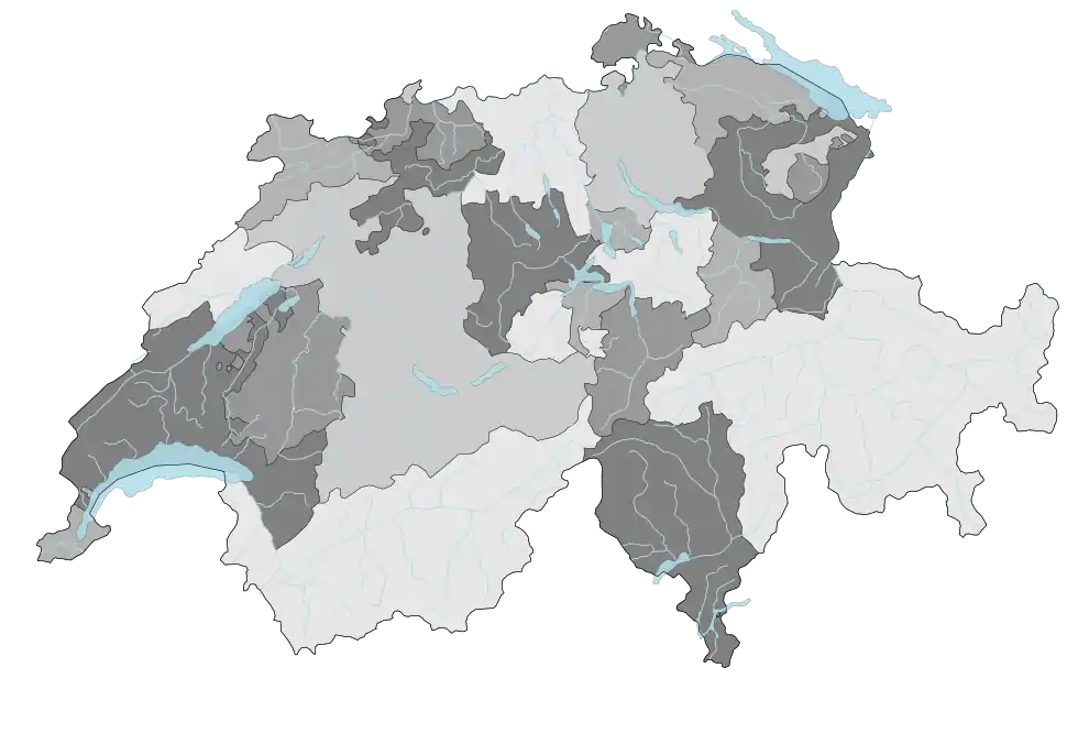 Швейцария — федеративная республика, состоящая из 26 кантонов (20 кантонов (Kanton) и 6 полукантонов (Landesteil)), кантоны могут делиться на округа (Bezirk), округа на города и общины (Gemeinde), некоторые общины на городские районы (Stadtkreis). Ниже — список кантонов, причём многие города Швейцарии имеют разные названия в зависимости от языка).