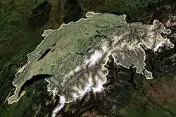 Швейцария расположена на стыке западной, центральной и южной Европы, не имеет выхода к морю и граничит с Италией на юге, Францией на западе, Германией на севере и Австрией и Лихтенштейном на востоке. Страна географически разделена между Альпами, швейцарским плато и Юрой, охватив общую площадь 41 285 км². В то время как Альпы занимают большую часть территории, население Швейцарии численностью примерно 8,5 млн человек в основном сосредоточено на плато, где расположены крупнейшие города, в том числе два глобальных — Цюрих и Женева.