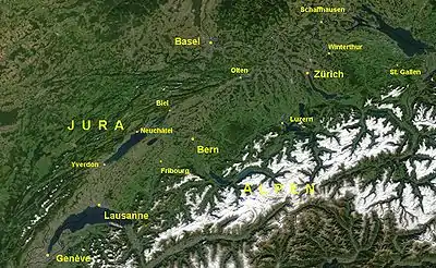 Швейцарское плато (фр. plateau suisse, нем. Schweizer Mittelland, англ. Swiss plateau) или швейцарское плоскогорье[1][2] — плоскогорье в Швейцарии между северными отрогами Альп и горами Юра шириной до 50 километров. С запада на восток протянулось от Женевского до Боденского озер на 240 километров[1][2]. Является одним из трёх определяющих типов ландшафта в Швейцарии, вместе с Юрой и Альпами. Оно покрывает около 30% территории современной Швейцарии, охватывает регионы, лежащие между массивами Альп на юго-востоке и Юры на западе. Плато частично равнинное, но в основном холмистое, высота над уровнем моря колеблется между 400 и 600 метрами. Это самый заселённый регион Швейцарии, важнейший для экономики страны.