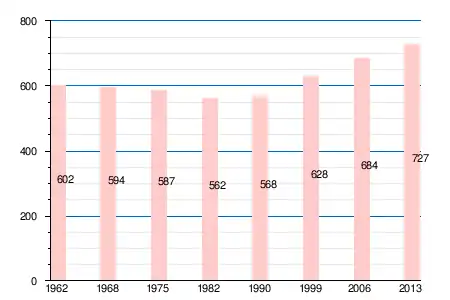 Население коммуны в 2011 году составляло 677 человек[6], в 2012 году — 702 человека[7], а в 2013-м — 727 человек[5].