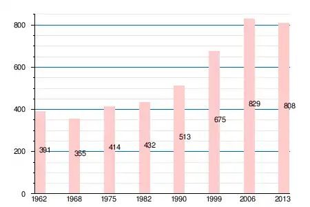 Население коммуны в 2011 году составляло 806 человек[6], в 2012 году — 801 человек[7], а в 2013-м — 808 человек[5].