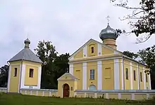 - Церковь Рождества Богородицы. В некоторых источниках фигурирует как Пречистенская церковь[6]. Каменное здание с отдельно стоящей каменной колокольней, брамой и воротами было построено в 90-е годы XVIII века. Церковь — действующая.