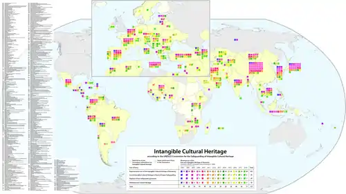 Процедура составления списка шедевров устного и нематериального культурного наследия во многом похоже на составление списка всемирного наследия. Перечень признанных ЮНЕСКО шедевров см. в статье Список нематериального культурного наследия человечества.