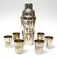Серебряный набор из шейкера и шести стаканчиков. Экспонат Президентской библиотеки-музея Франклина Рузвельта