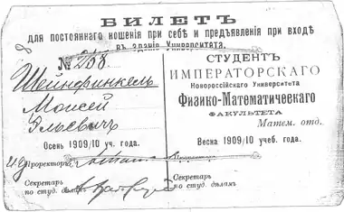 - Студенческий билет Моисея Шейнфинкеля
