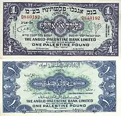 После провозглашения в 1948 году Израиля (который до этого был британской подмандатной территорией и в качестве валюты имел палестинский фунт, строго приравненный к британскому фунту стерлингов) перед независимым государством встал вопрос о национальной валюте. Провозгласив независимость, израильтяне немедленно сменили банкноты на свои, но не поменяли название валюты. Когда банкноты заказывались, никто ещё не знал, как будет названо новое государство, не говоря уже об имени собственной валюты. Поэтому было решено напечатать на купюрах — «палестинский фунт» на английском, как и было ранее на валюте времён мандата, и «лира земли израильской» на иврите.