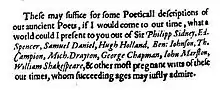 Социальный статус Шекспира также последовательно упоминается современниками в эпиграммах: Джона Дэвиса в «Плети глупости» (1611 год): «To our English Terence, Mr. Will. Shake-speare» (рус. Нашему английскому Теренцию, Мр. Уилл Шекспиру)[74]; Томаса Фримана из «Runne and A Great Caste» (1614 год) — «To Master W: Shakespeare»[75][76]. Также он упоминается с титулом у историка Джона Стоу в его списке «Our moderne and present excellent Poets» (рус. Наши современные и нынешние замечательные поэты) из его «Анналов», изданных посмертно (1615 год), где сказано: «M. Willi. Shake-speare gentleman»[77].