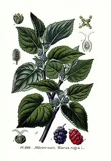 - Morus nigra L. typus[2] — Шелковица чёрная — Юго-Западная Азия