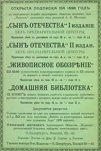 Реклама изданий под редакцией А. К. Шеллера, 1898 год.