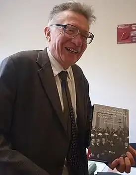 ![]() Шелохаев В. В. с подарком — книгой М. А. Бабкина «Конфессиональная политика Временного правительства России» (ИРИ РАН, 18.09.2018) | |