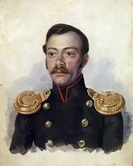 ![]() А. К. Шепетковский в 1843 г. (портрет кисти Павла Федотова) | |