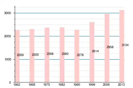 Население коммуны в 2011 году составляло 3074 человека[7], в 2012 году — 3136 человек[8], а в 2013-м — 3134 человека[6].
