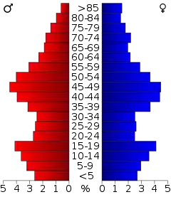 Население округа по возрастному диапазону по данным переписи 2000 года распределилось следующим образом: 24,10 % — жители младше 18 лет, 8,00 % — между 18 и 24 годами, 25,30 % — от 25 до 44 лет, 27,10 % — от 45 до 64 лет и 15,50 % — в возрасте 65 лет и старше. Средний возраст жителей округа составил 41 год. На каждые 100 женщин в округе приходилось 95,90 мужчин, при этом на каждых сто женщин 18 лет и старше приходилось 94,00 мужчин также старше 18 лет.
